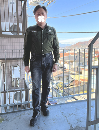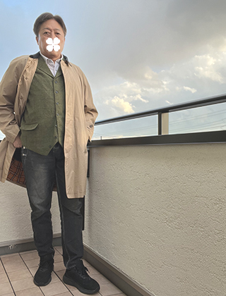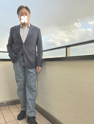 普段の服装:シャツ、ジャケット、黒ジーンズが基本です