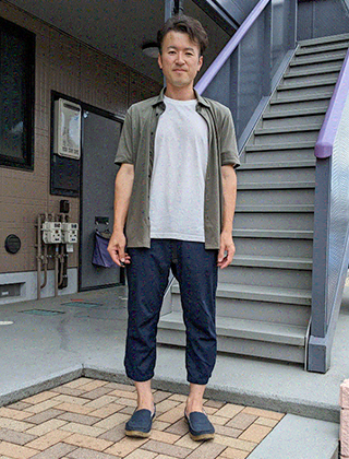 普段の服装:Tシャツに七分丈のパンツ