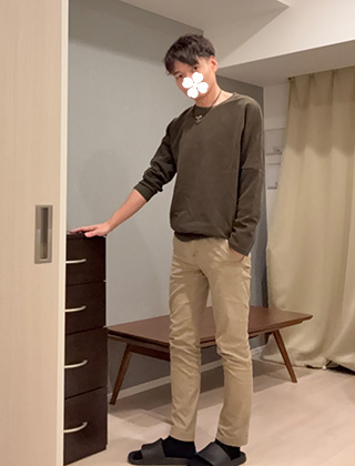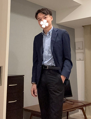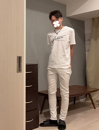 普段の服装:清潔感のあるシンプルスタイル。白シャツやジャケットなど、爽やかで落ち着いたコーデが多めです。