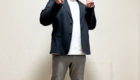 普段の服装:シャツにジャケット、パンツ、スニーカー